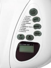 Domácí pekárna kombinuje možnost pečení domácího chlebu či marmelády. Maximální objem chleba 1,3 kg. 10 přednastavených programů.