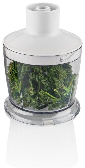 K přístroji dostanete odnímatelný nerezový tyčový mixér a šlehací nástavec, který obsahuje převodovku pro zajištění optimálních otáček. To využijete při šlehání například sněhu, který musíte vyšlehat opravdu pečlivě. Sekáček, který patří ve výbavě mixéru obsahuje ostrý, srpovitý nerezový nůž, který si poradí i s těmi nejtvrdšími surovinami. Nakonec k mixéru dostanete i pracovní nádobu s víkem o objemu 700 ml.