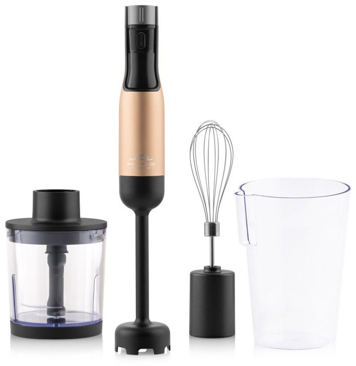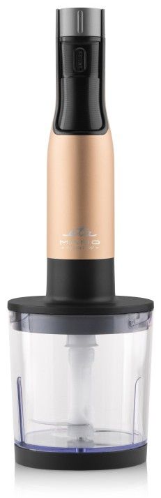 - Příslušenství: Mixovací nástavec ze slitiny hliníku, Šlehací nástavec, Sekáček 500 ml, Pracovní nádoba o objemu 600 ml