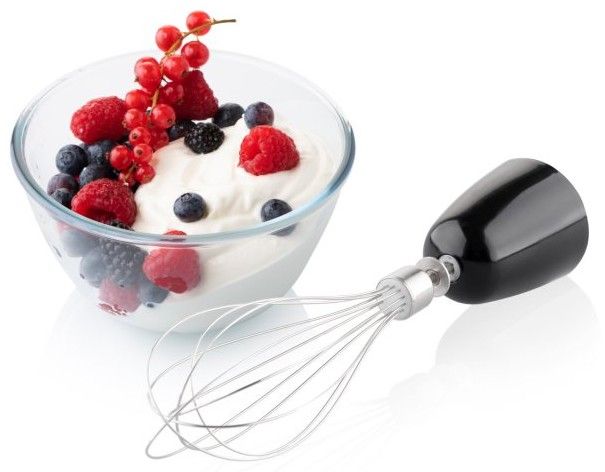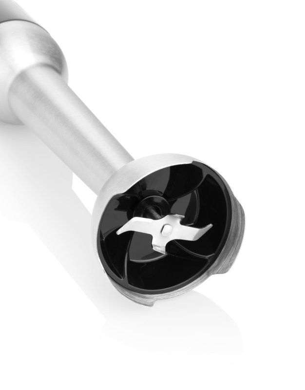 Bohaté příslušenství: Odnímatelný nerezový nástavec na mixování, Šlehací nástavec, Převodovka pro zajištění optimálních otáček, Unikátní vysokorychlostní sekáček potravin (500 ml), Bezpřevodový systém sekání, Bezpečnostní uzavírací systém, Speciální tvar srpovitého nerezového nože, Protiskluzové nožky nádoby zajišťující stabilitu, Pracovní nádoba s víkem o objemu 800 ml, Speciální nástavec na mačkání brambor a přípravu zeleninových pyré