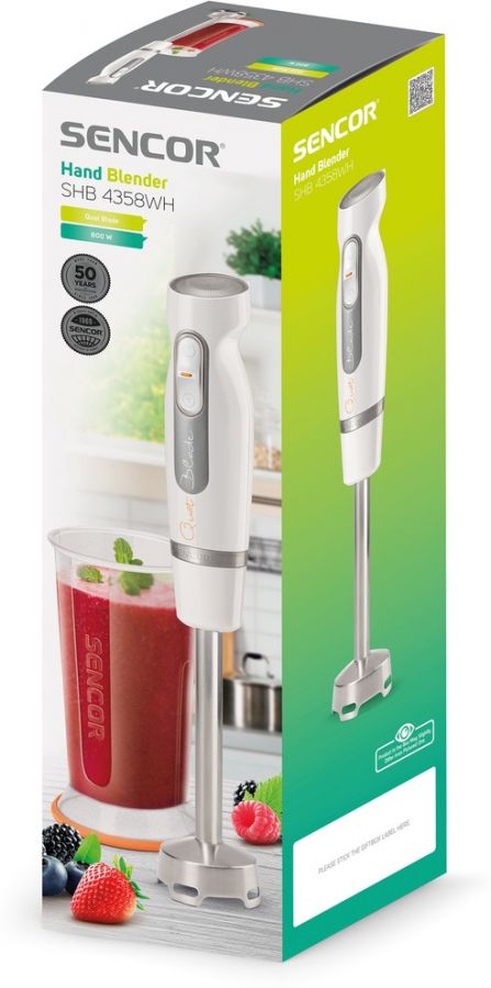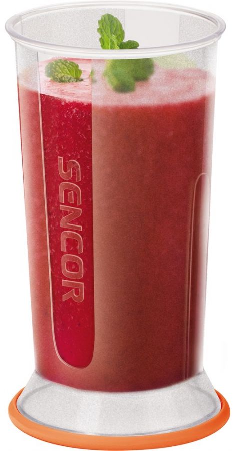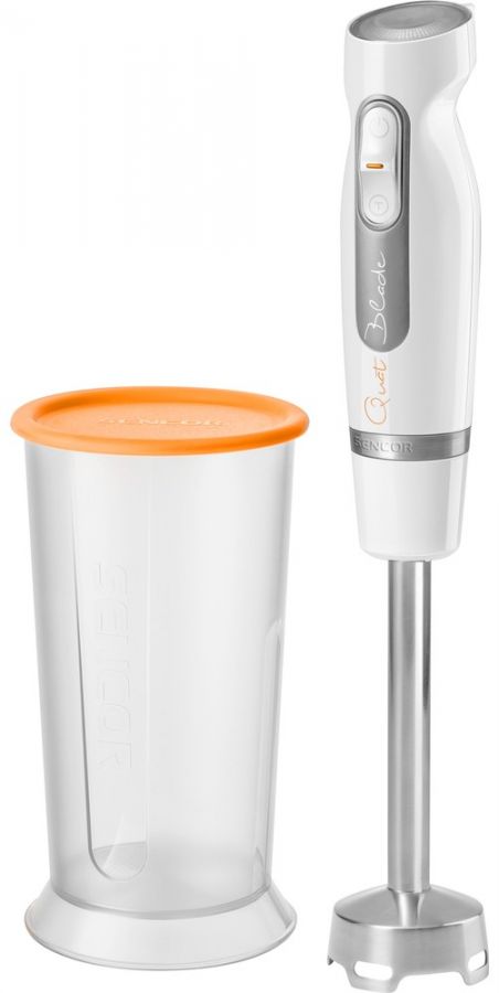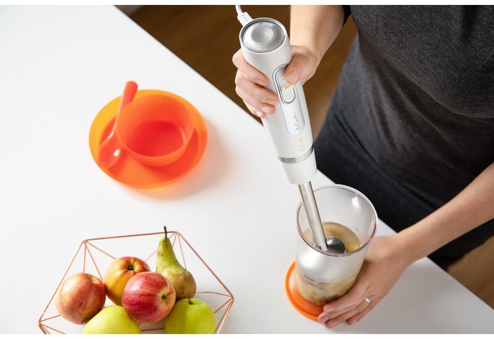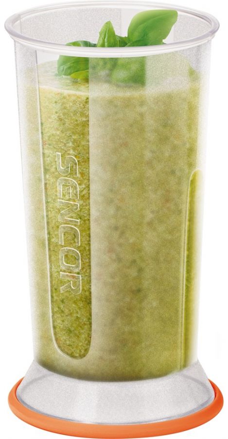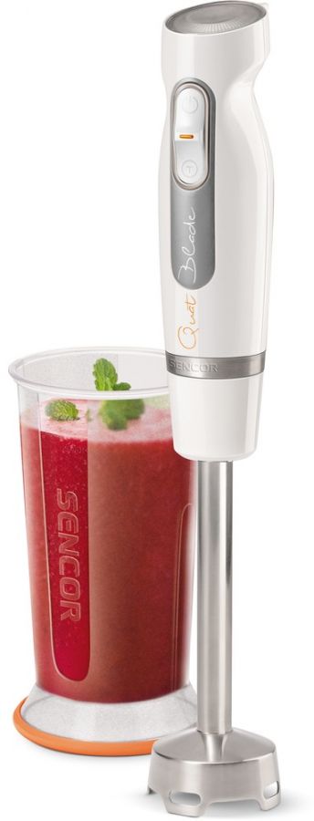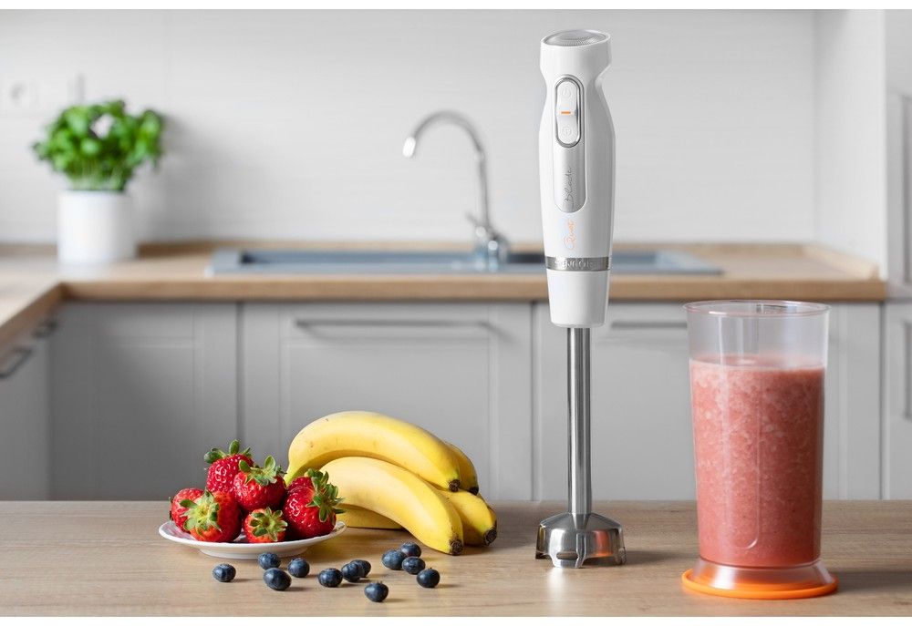 Tyčový mixer s tichým motorem o výkonu 800 W, nádobou na mixování s odměrkou o objemu 700 ml.