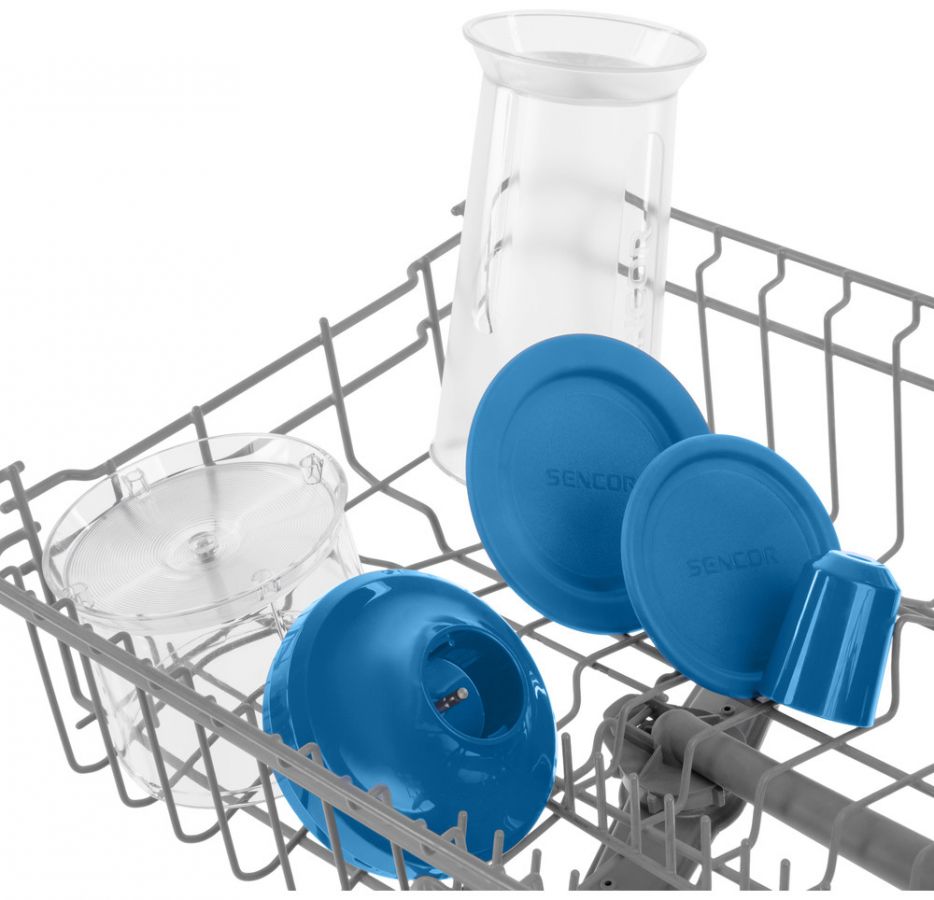 Ovládám se velmi snadno! Mohu nastavit hned několik rychlostních stupňů, aniž bych se musel vypnout. Svou rychlost ovládám pomocí otočného kolečka v horní části rukojeti, která je ergonomicky tvarovaná, a tak perfektně padnu do každé ruky. Dokonce mě Sencor vybavil Turbo spínačem, s kterým dosáhnu během krátké chvilky maximálního výkonu, např. pro drcení ledu.