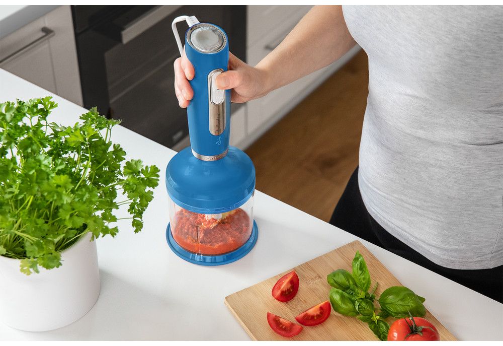 Při práci si užívám špičkový výkon mého motoru a přitom jsem tišší. Přípravu pokrmů mám pod kontrolou a urychlím celkový proces vaření. Lze mě využít na tří různě způsoby - mixování, šlehání a sekání.