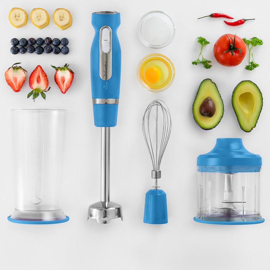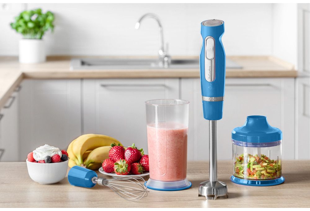 Příslušenství: Nádoba o objemu 700 ml s víčkem, 500 ml sekáček, šlehací metla