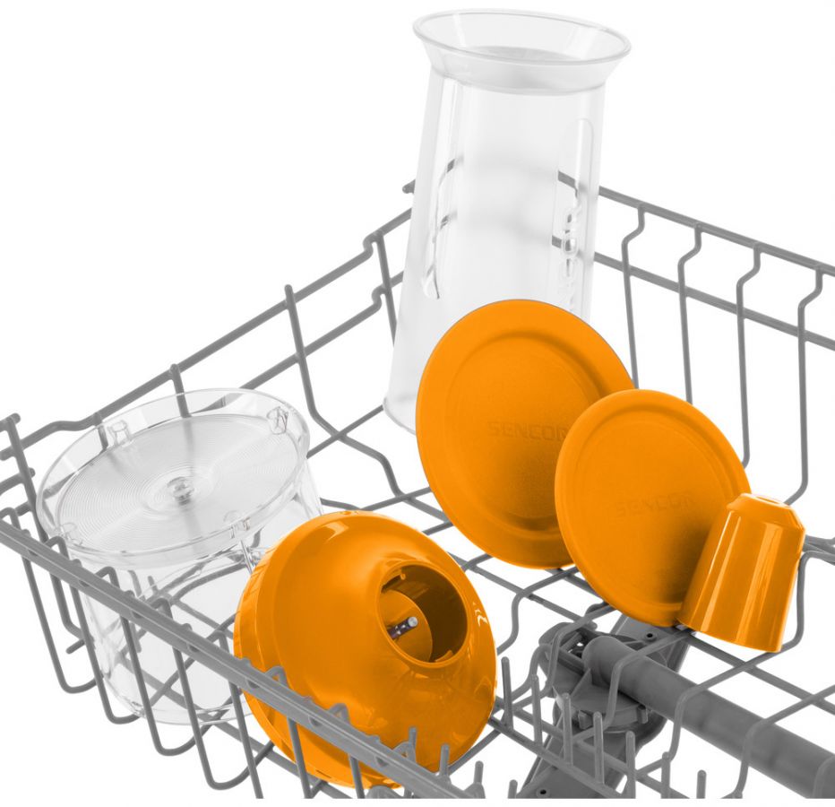 Ovládám se velmi snadno! Mohu nastavit hned několik rychlostních stupňů, aniž bych se musel vypnout. Svou rychlost ovládám pomocí otočného kolečka v horní části rukojeti, která je ergonomicky tvarovaná, a tak perfektně padnu do každé ruky. Dokonce mě Sencor vybavil Turbo spínačem, s kterým dosáhnu během krátké chvilky maximálního výkonu, např. pro drcení ledu.