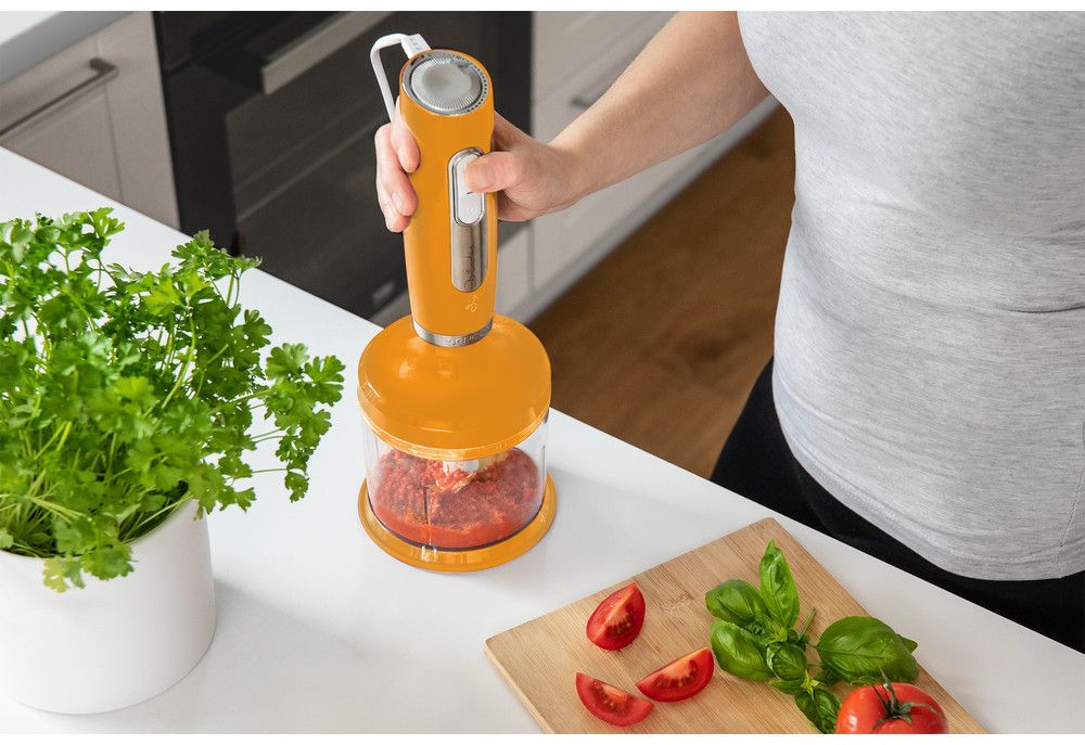 Při práci si užívám špičkový výkon mého motoru a přitom jsem tišší. Přípravu pokrmů mám pod kontrolou a urychlím celkový proces vaření. Lze mě využít na tří různě způsoby - mixování, šlehání a sekání.