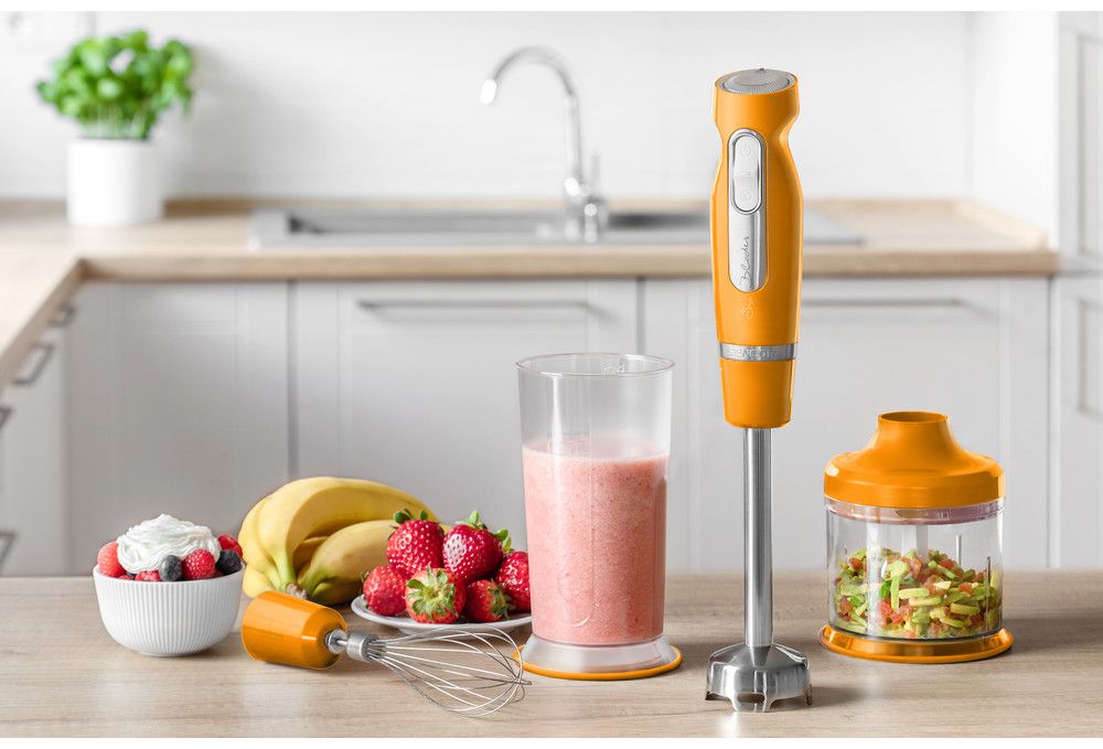Příslušenství: Nádoba o objemu 700 ml s víčkem, 500 ml sekáček, šlehací metla