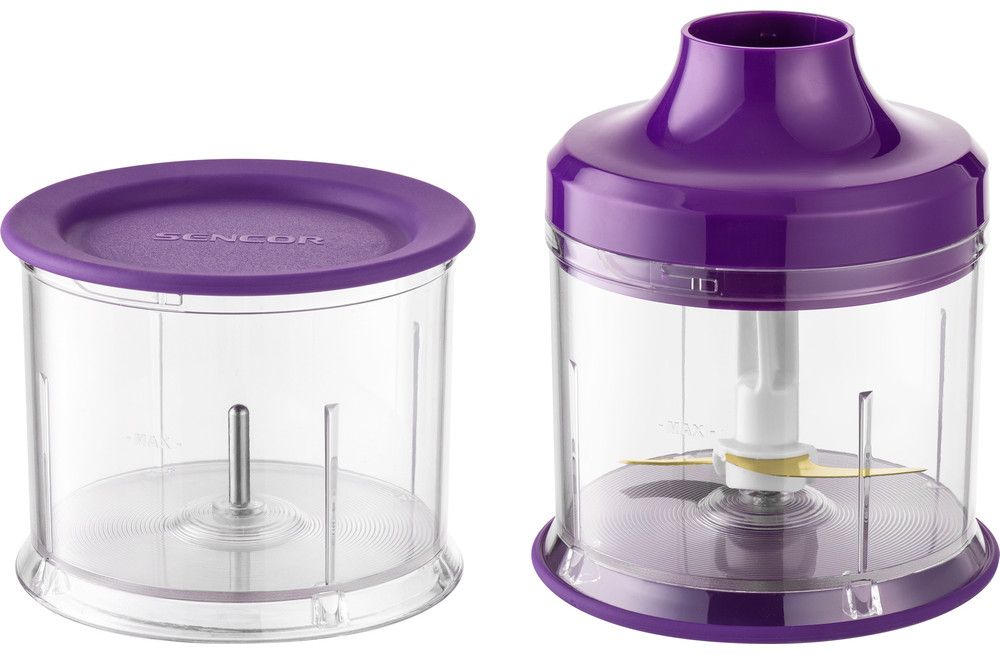 Příslušenství: Nádoba o objemu 700 ml s víčkem, 500 ml sekáček, šlehací metla