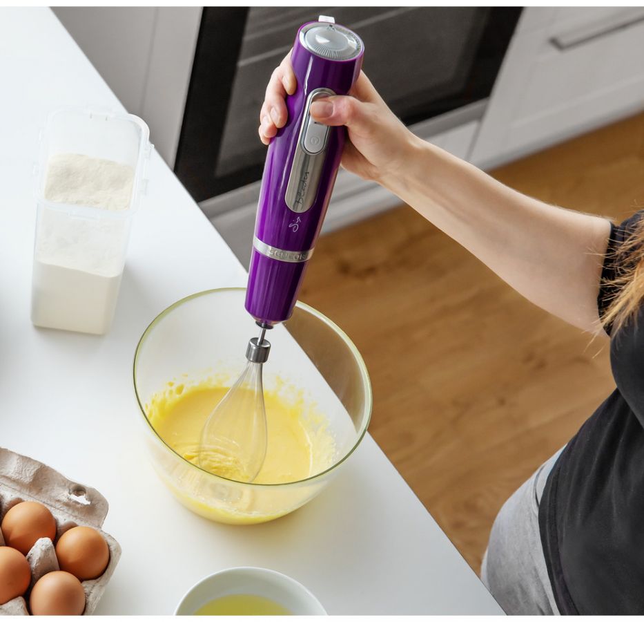 Při práci si užívám špičkový výkon mého motoru a přitom jsem tišší. Přípravu pokrmů mám pod kontrolou a urychlím celkový proces vaření. Lze mě využít na tří různě způsoby - mixování, šlehání a sekání.