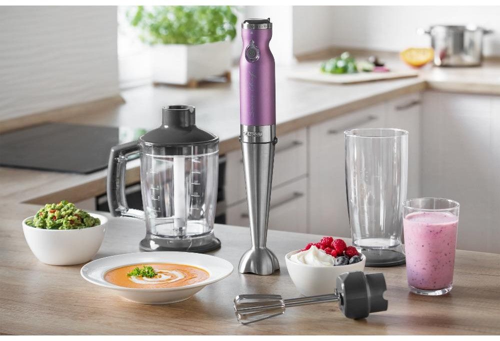 Příslušenství: 800 ml mixovací nádobka s víčkem, Nerezový dvoumetlový šlehací nástavec, Sekáček o objemu 1 250 ml s nerezovými noži