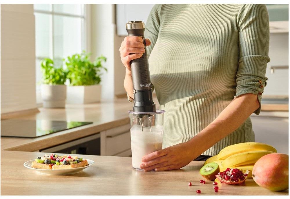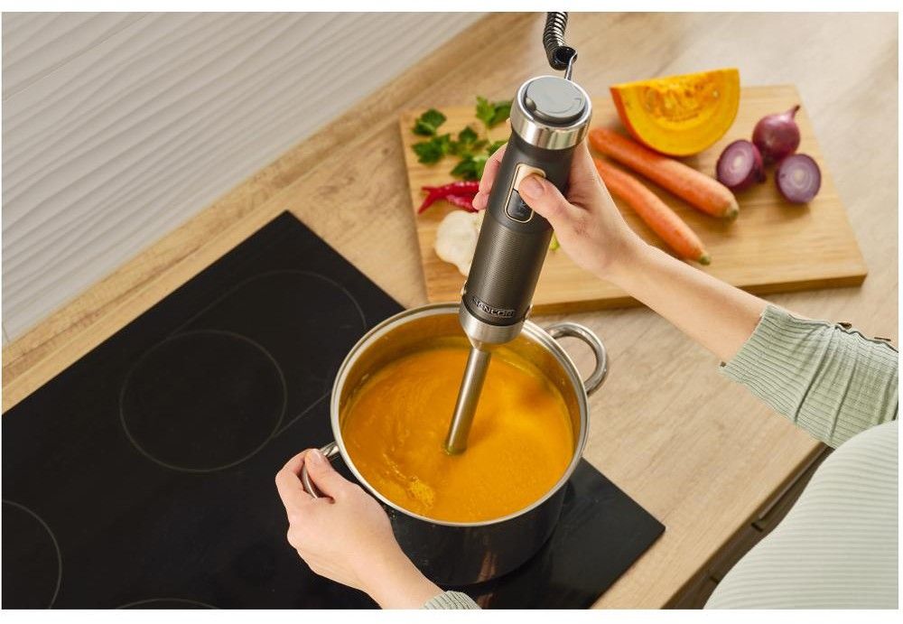 Oproti běžným tyčovým mixérům se pyšní extra výbavou. Naleznete v ní praktický mlýnek na koření a bylinky. S jeho pomocí si můžete vytvářet různé varianty kořenicích směsí a bylinkových solí. Do kuchyňského robotu lze vložit strouhací a krájecí nástavec, které se hodí pro výrobu salátů a zeleninových základů do jídel. Pro přípravu zeleninových pyré a bramborové kaše vám bezvadně poslouží mačkač brambor. A můžete s ním i napěnit mléko.