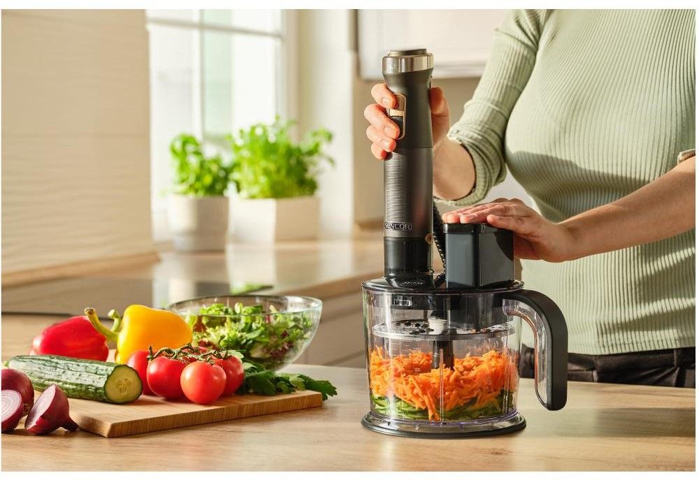 Tyčový mixér Sencor SHB 6552BK se řadí mezi nejvýkonnější kuchyňské spotřebiče. Food processor s nádobou o objemu 1,5 litrů bude váš multifunkční pomocník, ve kterém nastrouháte, nakrájíte, umixujete, nasekáte a dokonce i uhnětete těsto.