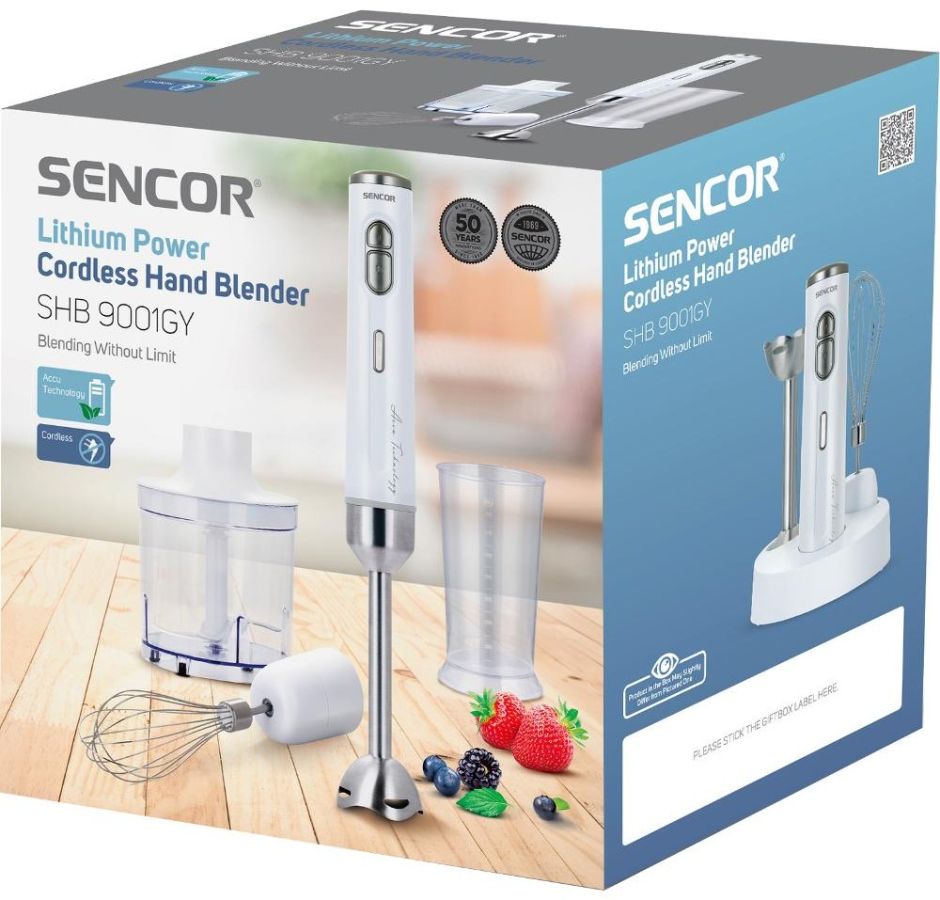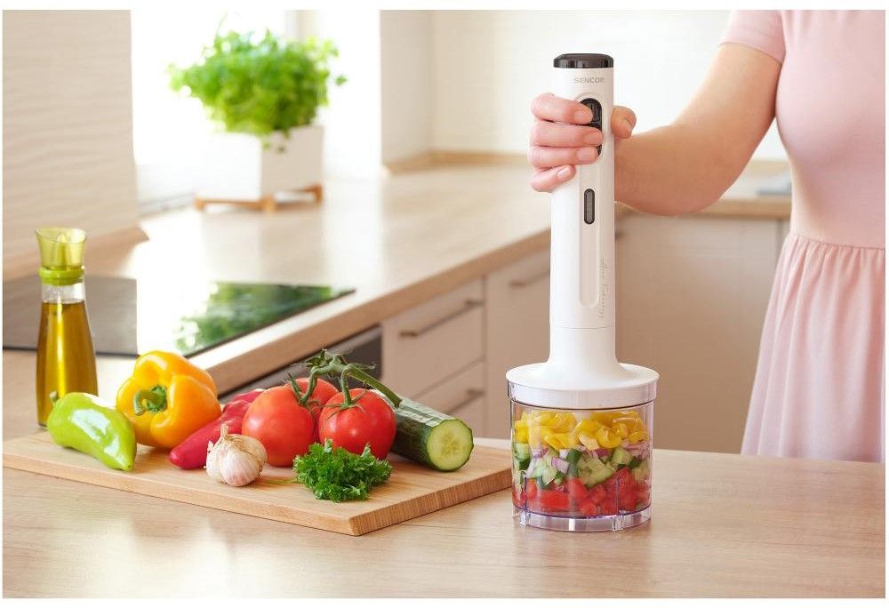 SENCOR SHB9000WH bíláAku tyčový ponorný mixér s 2 rychlostmi mixování, titanovým povrchem nožů a ukládací základnou.SHB9000WH bílá1 239 bez DPH1 499 Kč