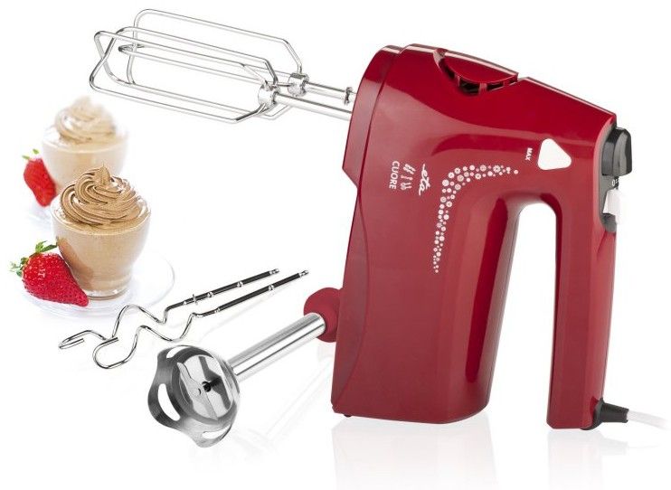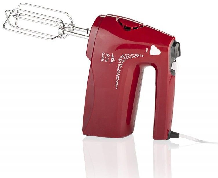 Ruční šlehač ETA 1089 90010 Cuore je moderní šlehač s elegantním designem v červené barvě, který Vám zajistí velmi pohodlné použití. Šlehač se dobře drží díky ergonomické rukojeti. K dispozici máte celkem 4 optimální rychlosti a tlačítko MAX pro maximální otáčky.