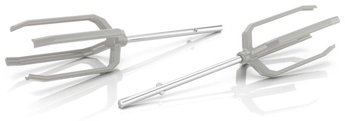 Kromě brousku je vybaven dvěma hnětacími háky, balónovou šlehací metlou a dvěma dlouhými šlehacími metlami s inovovanou konstrukcí. Ta zajistí dokonalé zpracování surovin, aniž by přitom poškodila povrch nádoby.