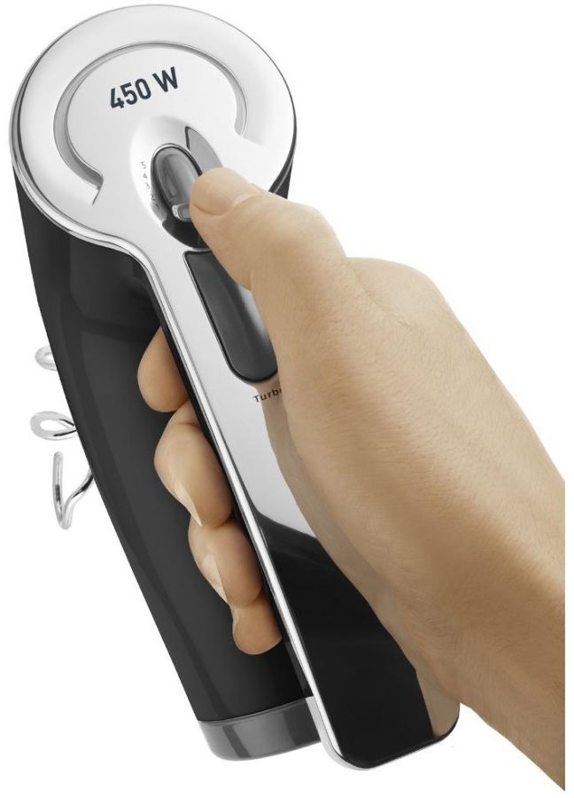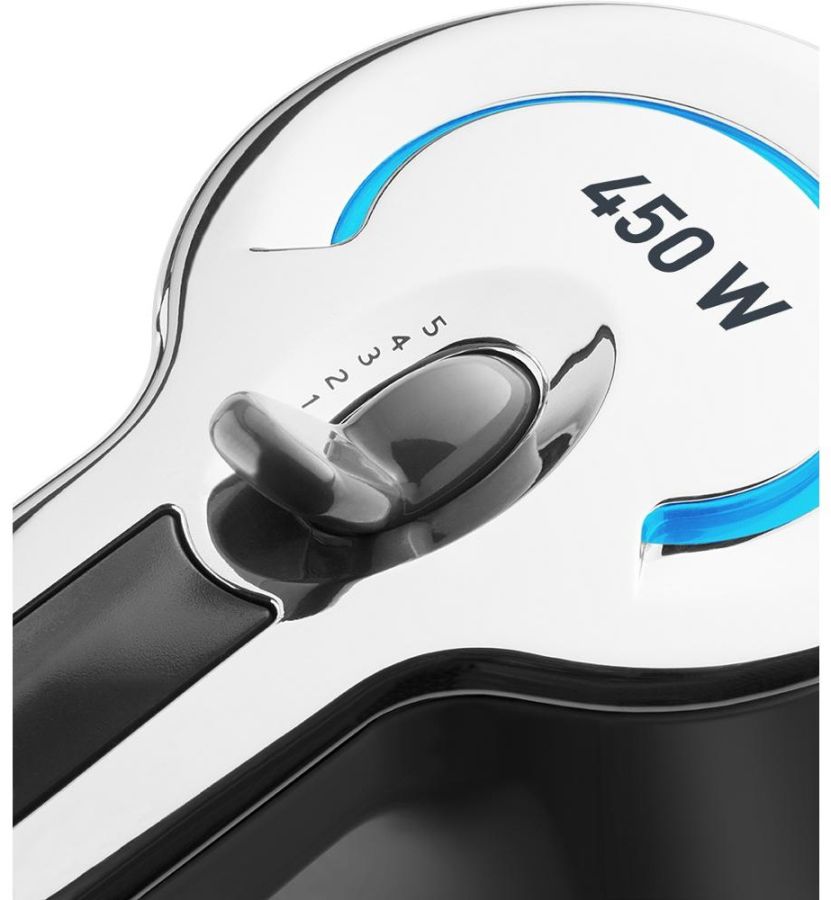 Ruční šlehač má výkonný motor 450 W, elegantní LED indikátor a 5 rychlostí + turbo .