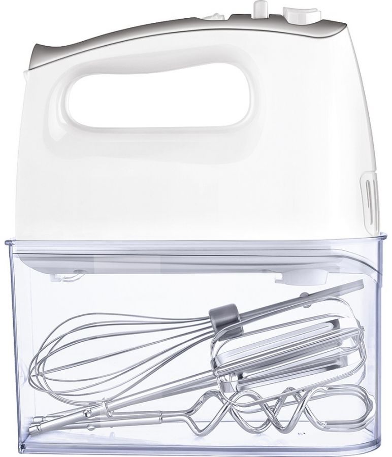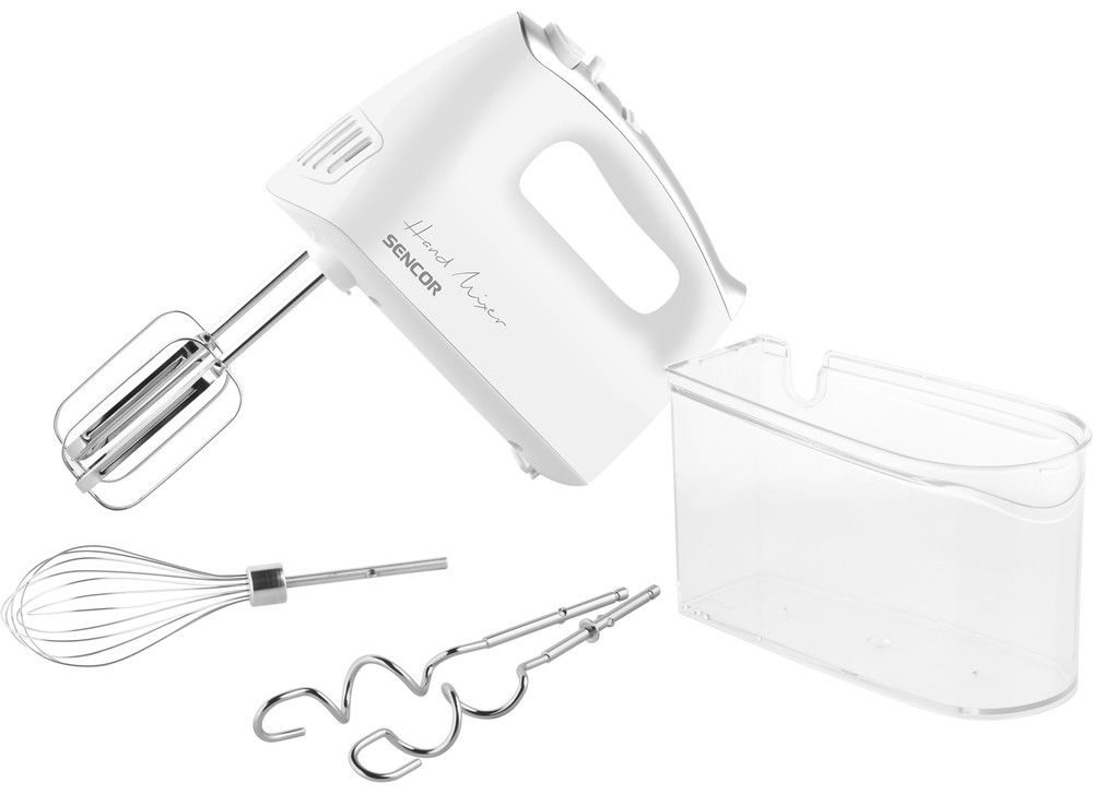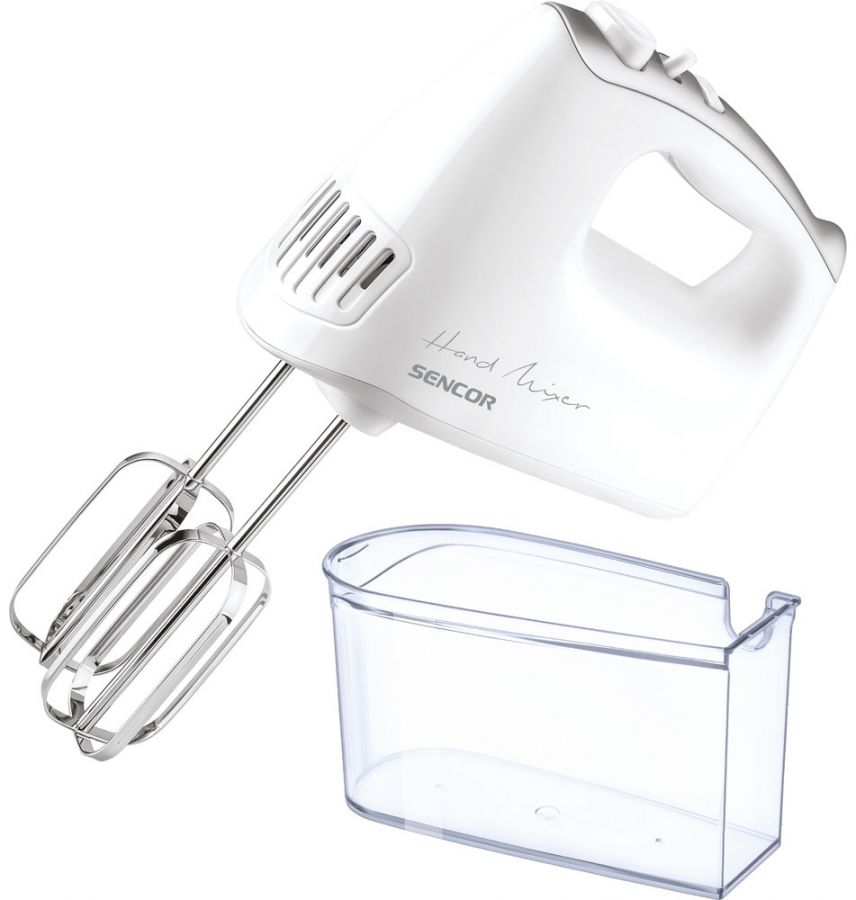 - Šlehací metla na šlehání krémů, vyšlehávání sněhu z vaječných bílků, přípravu piškotového těsta a směsí na dezerty - Tlačítko pro pohodlné uvolnění a vyjmutí nástavců