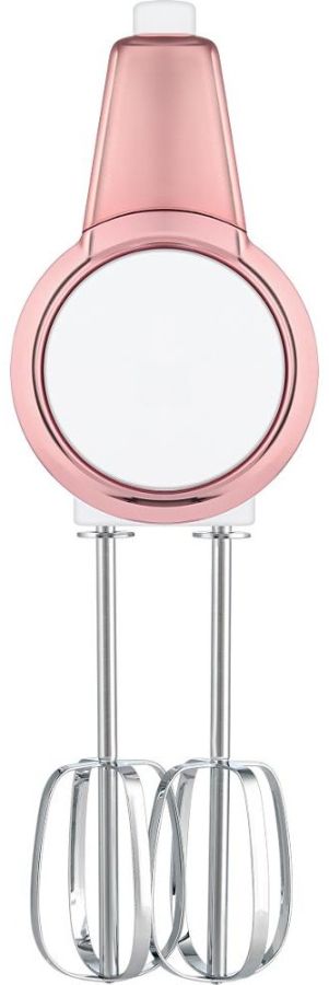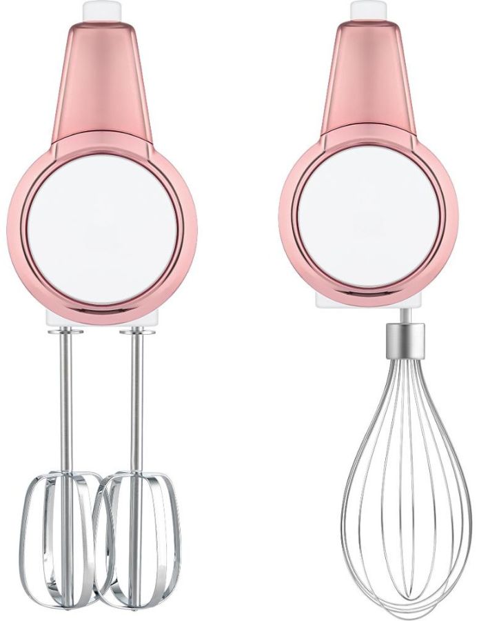 Příslušenství: Ruční šlehač, Ukládací základna, 2 chromované šlehací metly, Jedna velká nerezová metla, Nabíjecí adaptér, USB kabel