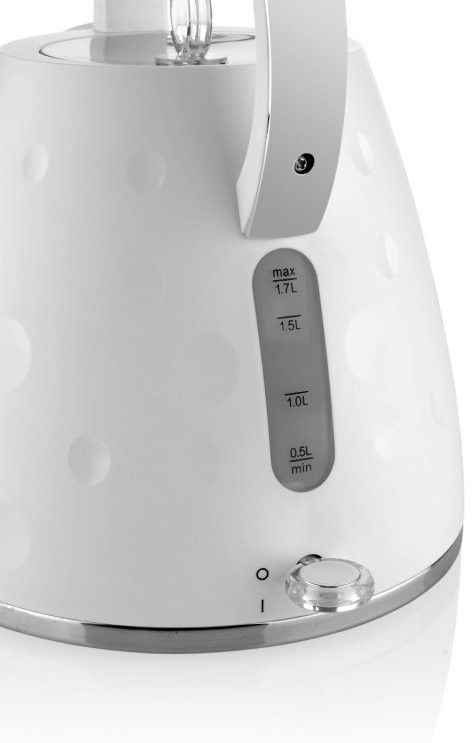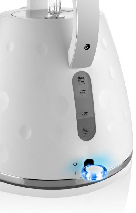 S příkonem 2200 W konvice rychle ohřeje vodu o objemu až 1,7 l. Objem si kontrolujete na vodoznaku v zadní části konvice. Má automatický systém vypínání při dosažení varu a dvojnásobný bezpečnostní systém, který zabraňuje jejímu spuštění v případě přehřátí nebo prázdné konvice.