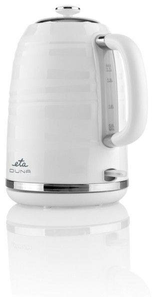 Elegantní rychlovarná konvice ETA Duna v bílém provedení vás okouzlí na první pohled. Na jedno naplnění zvládne připravit až 1,7 litru vody, což je dostatek i pro 6 klasických hrnků. S vysokým příkonem 2 200 W celý proces navíc zabere opravdu chviličku. Samozřejmostí je automatické vypnutí po dosažení bodu varu.