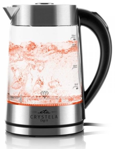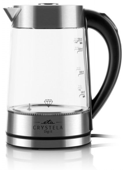 Skleněná rychlovarná konvice Crystela Digi II o objemu 1,7 l. Čiré a velmi odolné sklo s vnitřním LED osvětlením, regulací teploty, funkce KEEP WARM a bezpečnostní pojistkou proti přehřátí a chodu naprázdno.