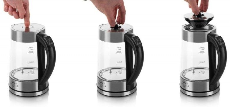 Konvice má jednoduché otevírání víka pomocí tlačítka v držadle. Díky skrytým topným tělesům pod rovným nerezovým dnem nehrozí jejich zanášení a díky oblým a snadno přístupným tvarům je snazší i povrchová údržba. V podstavci se pak skrývá prostor pro navinutí napájejícího kapelu.