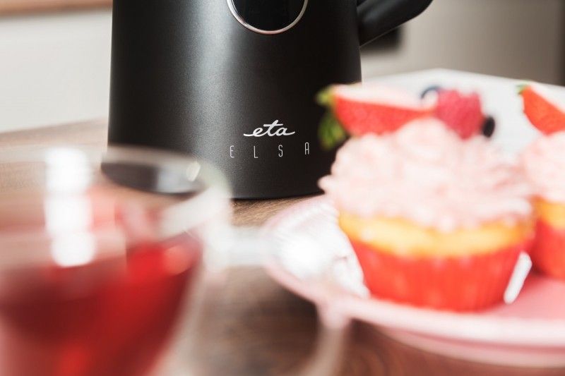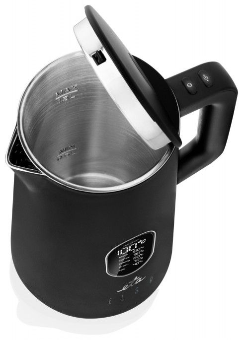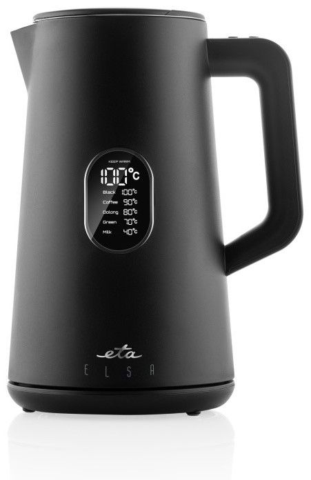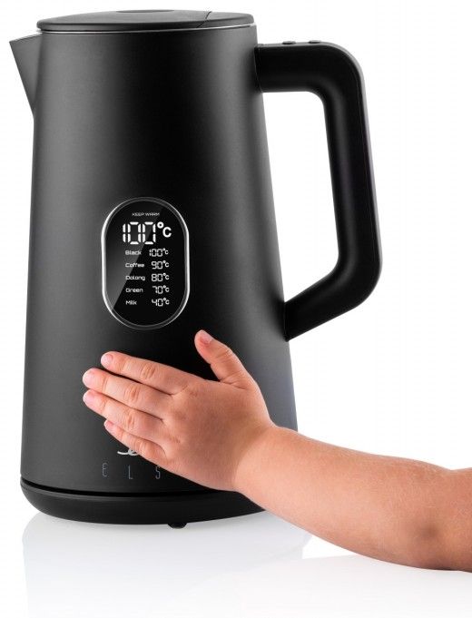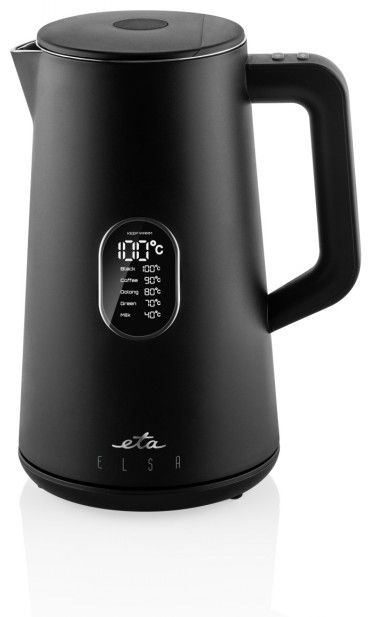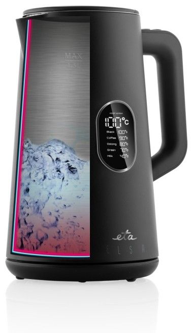 Rychlovarná konvice Elsa o objemu 1,5 l. Má schopnost regulace teploty pro různé druhy čaje, kávy i kojenecké výživy, přehledný LED displej, skryté topné těleso a světelnou a zvukovou signalizaci chodu konvice.