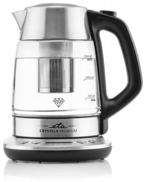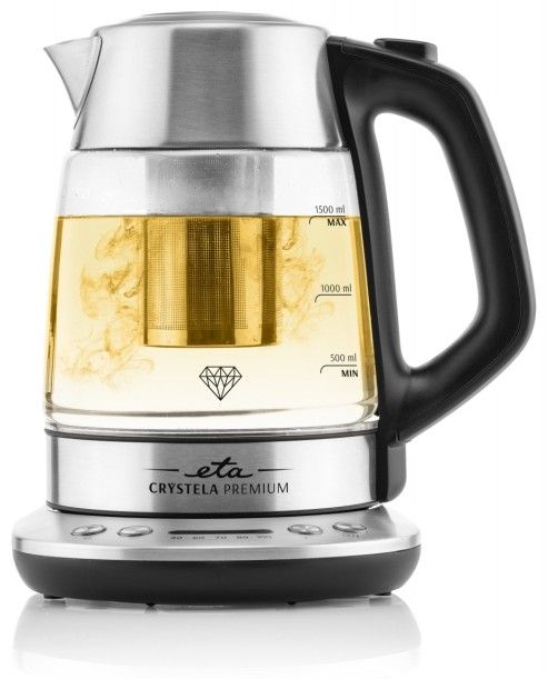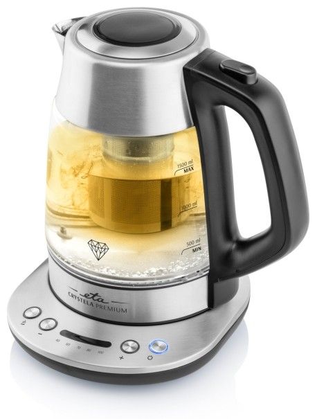 Skleněná rychlovarná konvice Crystela Premium s příkonem 2200 W a regulací teploty od 40 do 100 °C je ideální pro přípravu nejrůznějších čajů, instantních nápojů, jídel i dětské stravy.