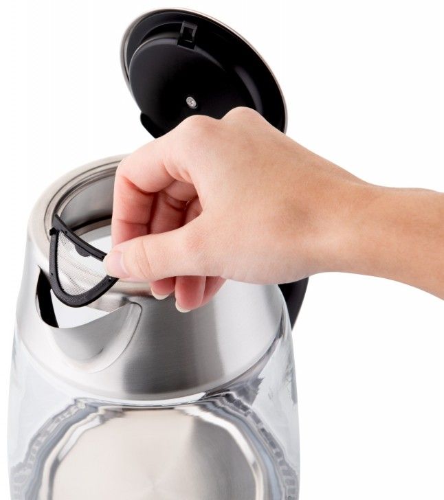 Důležitým a nadstandardním prvkem je odnímatelné nerezové sítko na čaj uzpůsobené pro použití přímo v konvici. Napájecí kabel je možno svinout a uschovat do podstavce konvice.