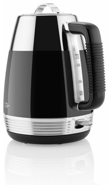Nerezovou varnou konvici Storio v černém provedení, o příkonu 2150 W, je možno naplnit až 1,7 litry vody. Díky přehlednému vodoznaku lehce rozpoznáte aktuální hladinu vody. Zapnutý stav konvice doprovází stylově podsvícený vodoznak. Automatický systém vypínání vypne ohřev vody při dosažení bodu varu, to vám zajistí pohodlnou obsluhu. Dvojnásobný bezpečnostní systém aktivuje bezpečnostní pojistku při nebezpečí přehřátí nebo v případě chodu naprázdno. Středový konektor STRIX zajišťuje vysokou bezpečnost, konvici díky němu vždy snadno umístíte na podstavec.