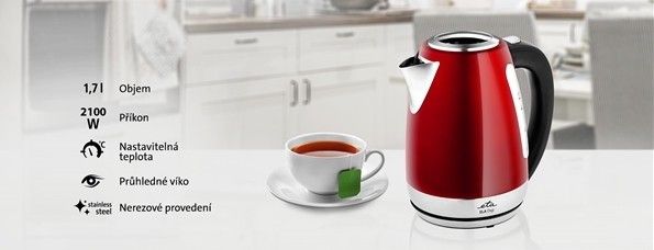 Nerezová rychlovarná konvice ETA Ela Digi o objemu 1,7 l v sobě snoubí elegantní design a nadstandardní funkce, které vás dostanou do varu. Anebo taky ne – díky možnosti nastavit si požadovanou teplotu si snadno a správně připravíte (nejen) čaje všeho druhu.