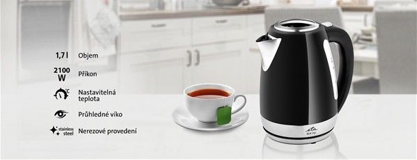 Nerezová rychlovarná konvice ETA Ela Digi o objemu 1,7 l v sobě snoubí elegantní design a nadstandardní funkce, které vás dostanou do varu. Anebo taky ne – díky možnosti nastavit si požadovanou teplotu si snadno a správně připravíte (nejen) čaje všeho druhu.