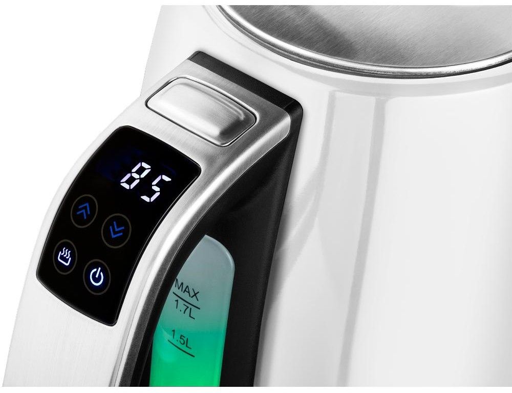 Rychlovarná konvice o objemu 1,7 l. Má regulaci teploty, funkce udržení teploty a vícenásobný systém ochrany.
