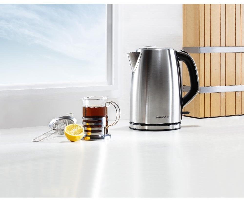 Rychlovarnou konvici Philco PHWK 1790 s velkým objemem 1,7 l doma nutně potřebujete. Vodu na čaj, kávu nebo do kaše připraví díky vysokému výkonu až 2200 W velmi rychle. Elegantní klasický design z kvalitní nerezové oceli s modrým světlem kontrolky provozu se hodí do každé kuchyně a bude vám dlouho spolehlivě sloužit. O pohodlné a bezpečné používání každý den se postarají detaily jako 360° otočná základna, ukazatel vody nebo automatické vypnutí a ochrana proti zapnutí bez vody.