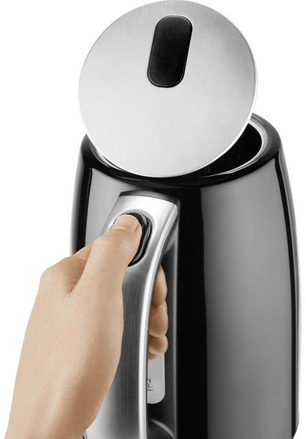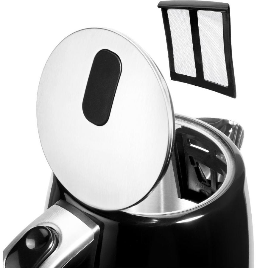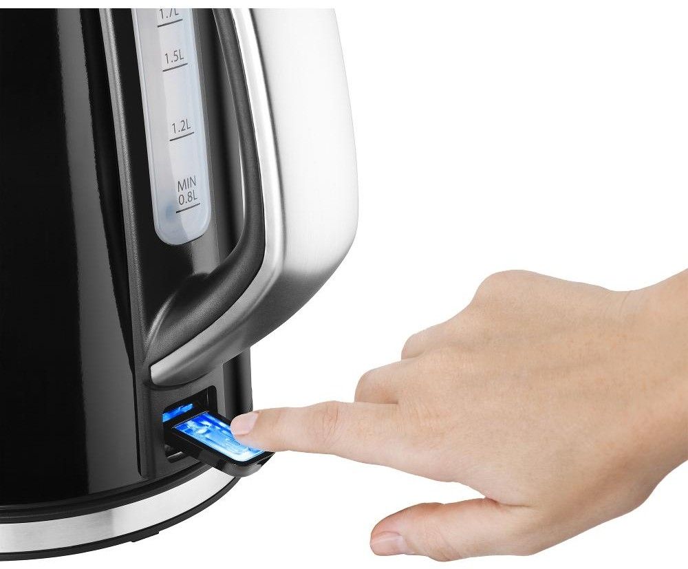 Rychlovarná konvice o objemu 1,7 l s LED kontrolkou provozu, skrytým topným tělesem a ukazatelem hladiny vody.