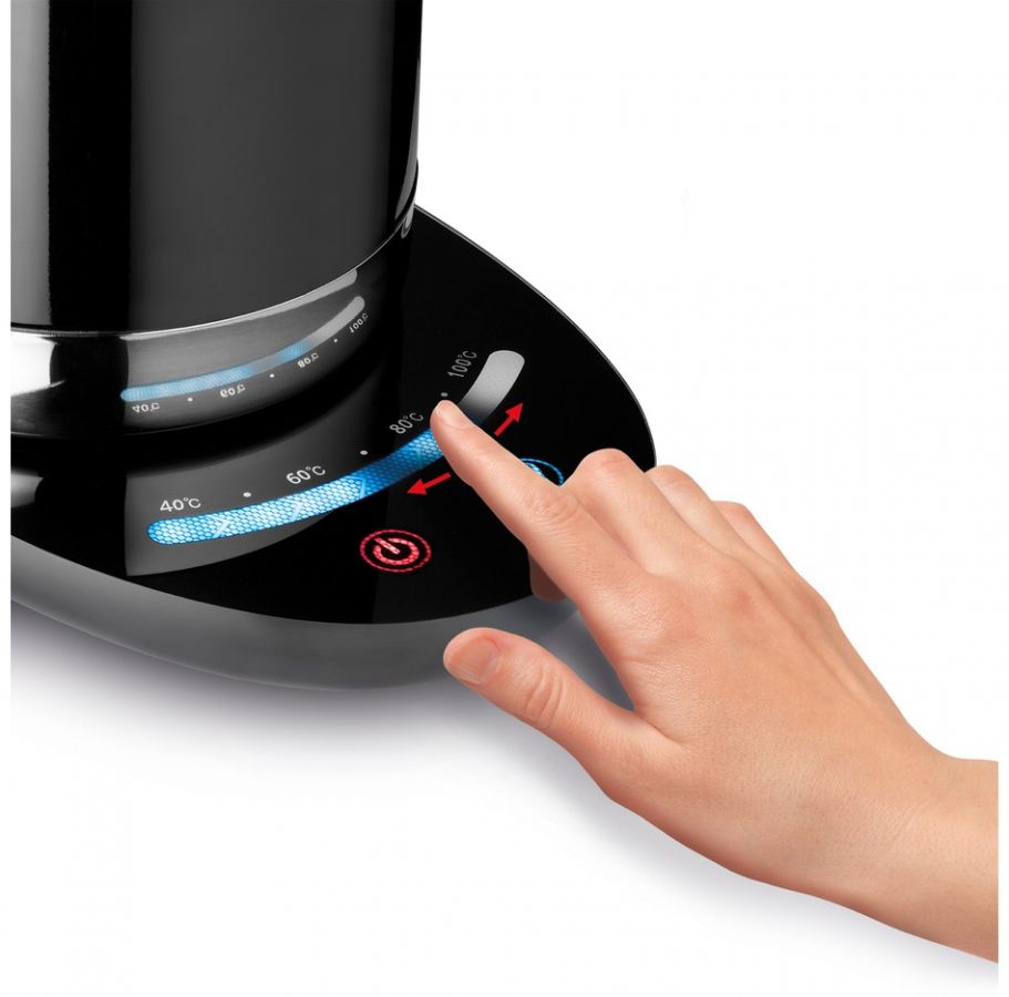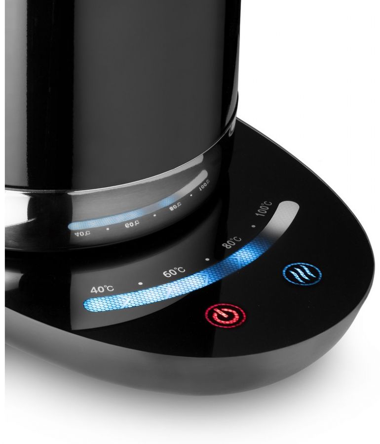 Chytrá konvice s termoregulací o objemu 1,6 l má jedinečnou technologii na trhu „slide touch“ pro ovládání teploty. Konvice je vyrobena z nerezové oceli a vyniká vysokou kvalitou zpracování. Nastavení teploty od 40°C do 100°C, čímž je vhodná k vaření čajů, kávy nebo pro přípravu dětské kaše. Funkce KEEP WARM umožní udržet teplotu na zvoleném stupni ohřevu. Má filtr pro zachycení usazenin a ochranu proti přehřátí, která zamezí chodu na prázdno.
