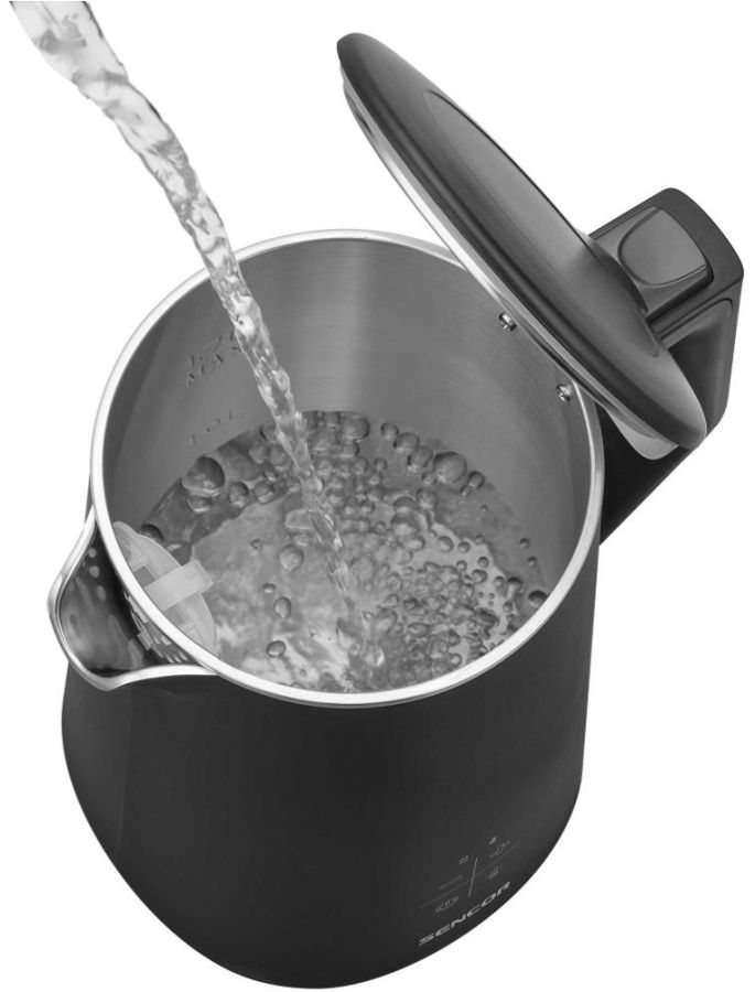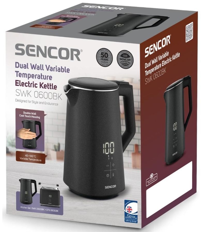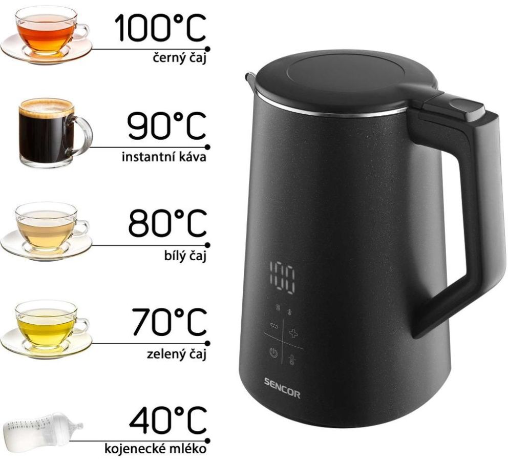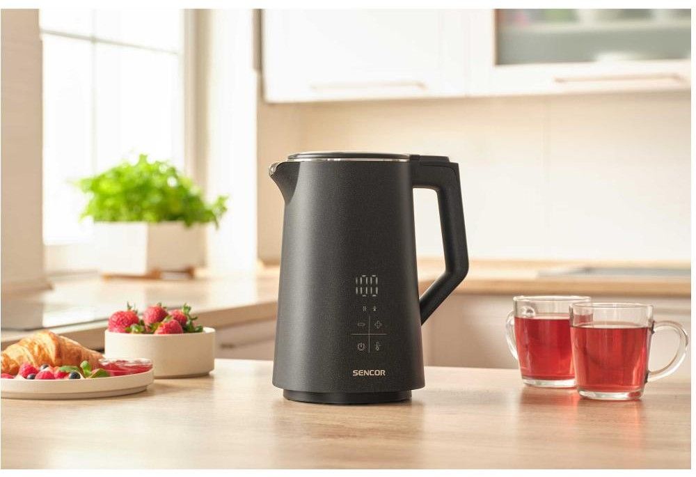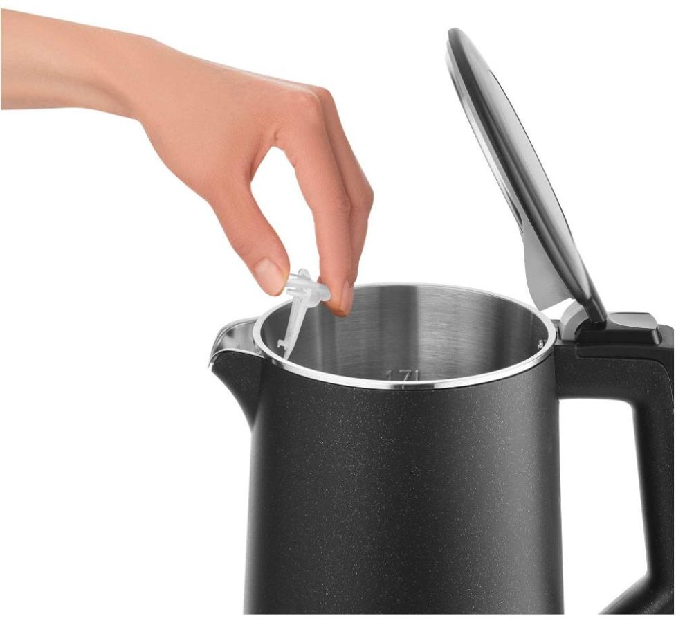 Rychlovarná konvice o objemu 1,7 l s dvouplášťovým provedením. Má regulaci teploty, dotykový ovládací LED panel, trojnásobné bezpečnostní jištění a zakrytou topnou spirálu.