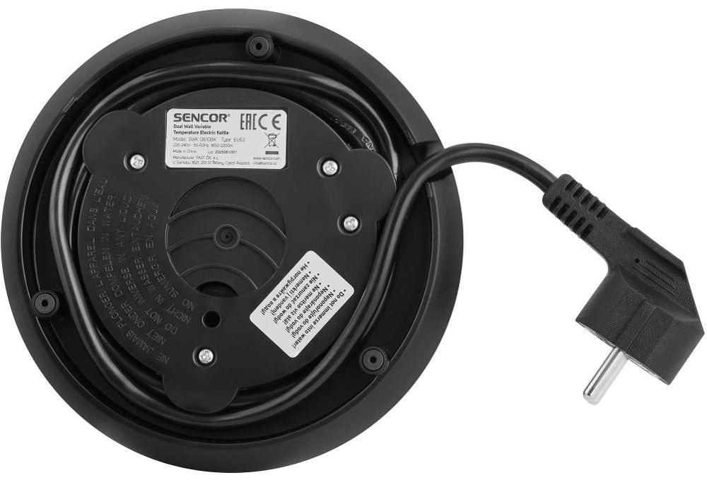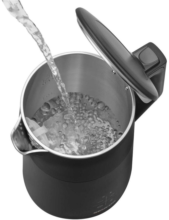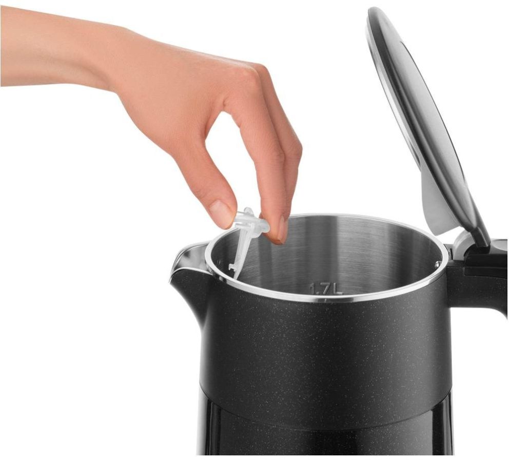 Obsah balení: Rychlovarná konvice, 360° základna s úložným prostorem pro napájecí kabel, Vyjímatelný filtr proti vodnímu kameni
