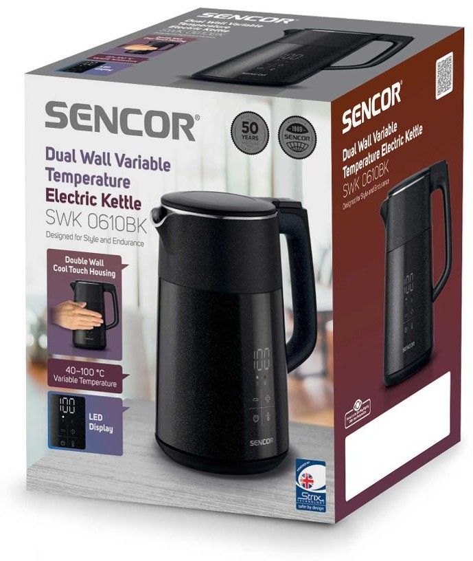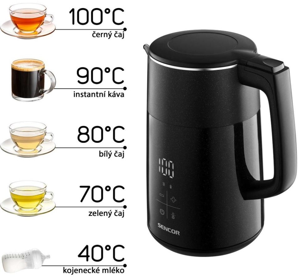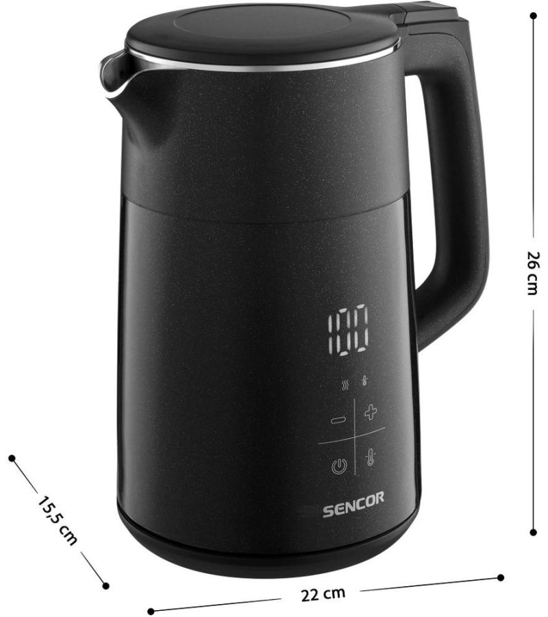Rychlovarná konvice o objemu 1,7 l s dvouplášťovým provedením. Má regulaci teploty, dotykový ovládací LED panel, trojnásobné bezpečnostní jištění a zakrytou topnou spirálu.