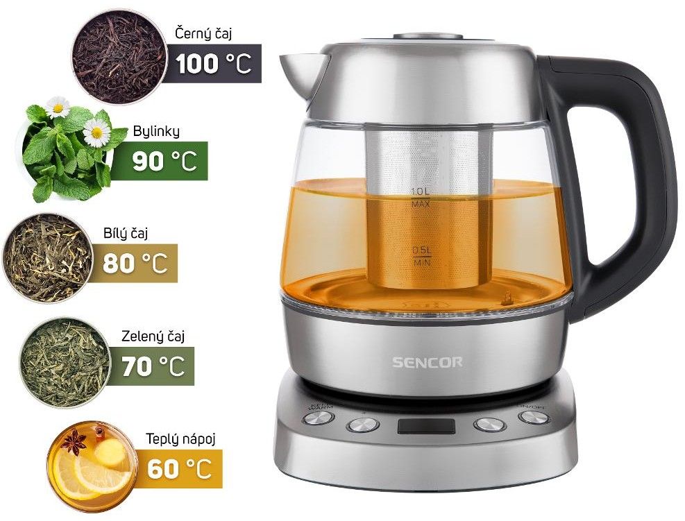 Asi se shodneme na tom, že teplota nápoje je velmi důležitá pro jeho kvalitu a finální chuť. Připravte si svůj čaj pohodlně prostřednictvím konvice a vyjímatelného nerezového sítka. Jelikož funguji jako čajovar, mám hned pět volitelných teplotních stupňů pro různé druhy čajů. Nabízím teploty v rozmezí 60-70-80-90-100 °C, kterou jednoduše nastavíte na displeji jedním zmáčknutím.