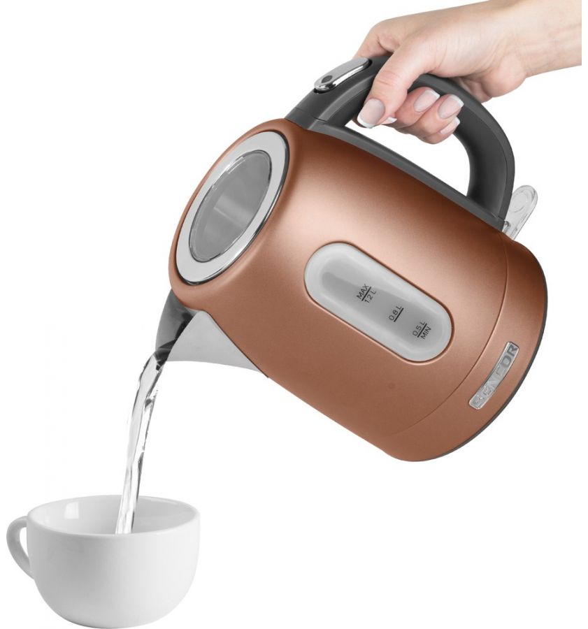 Rychlovarná konvice o objemu 1,2 l vody. Má ukazatel hladiny vody, vyjímatelný a omyvatelný filtr a dvojnásobné bezpečnostní jištění.