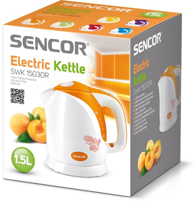 SENCOR SWK1513OR bílá/oranžováPlastová rychlovarná konvice o objemu 1,5 l. Má bezpečnostní jištění, filtr pro zachycení nečistot a usazenin,...SWK1513OR bílá/oranžová330 bez DPH399 Kč