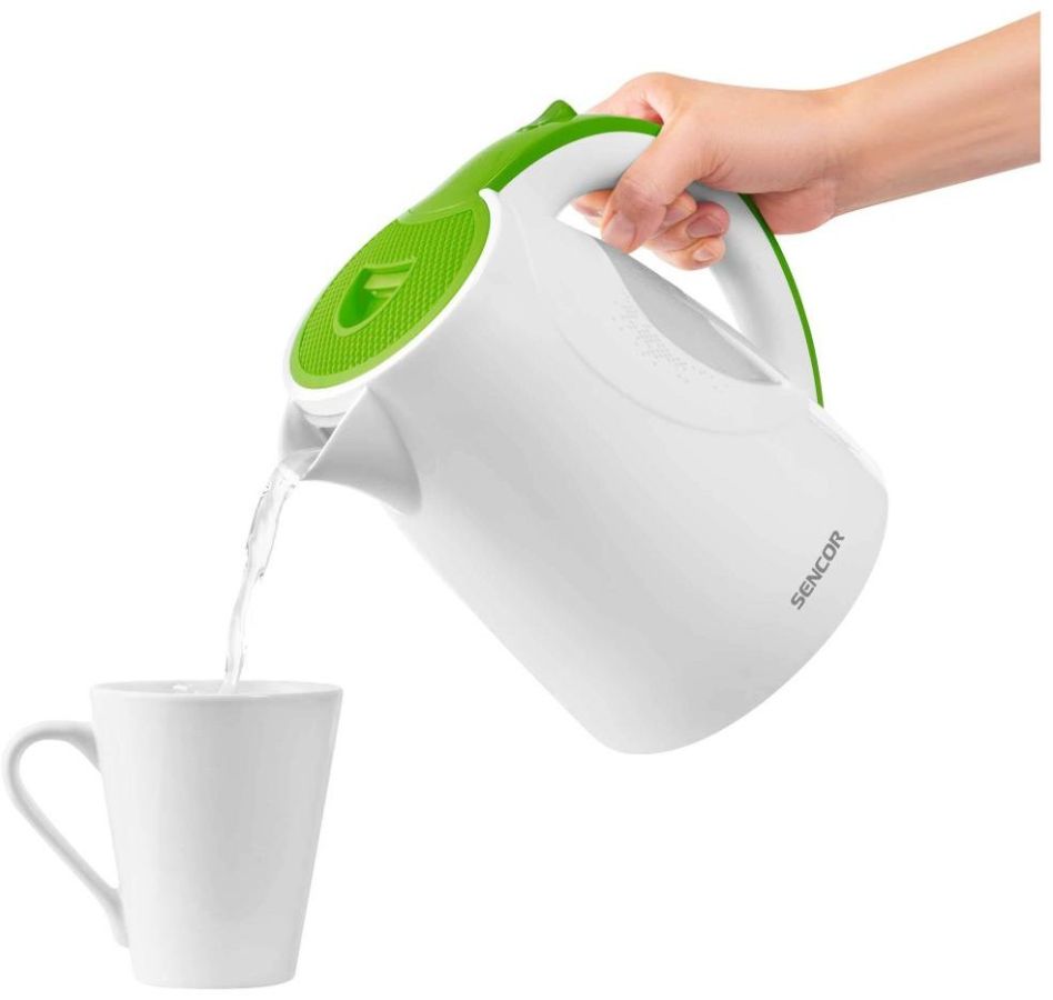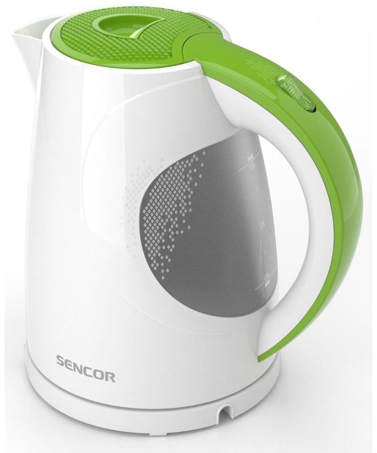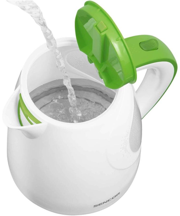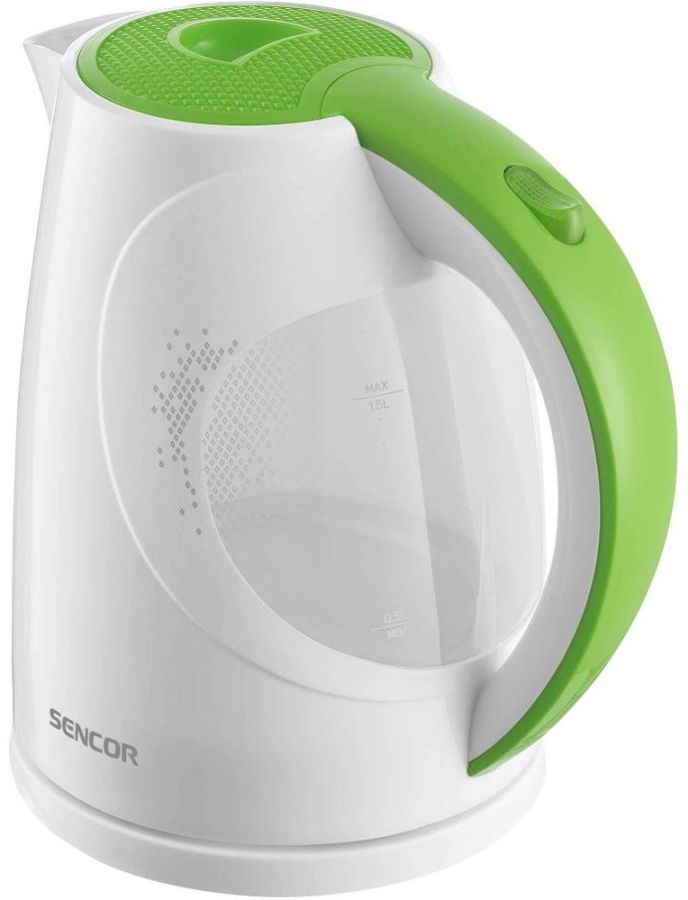 Plastová rychlovarná konvice o objemu 1,5 l. Má bezpečnostní jištění, filtr pro zachycení nečistot a usazenin, světelnou kontrolku zapnutí a zakrytou topnou spirálu.