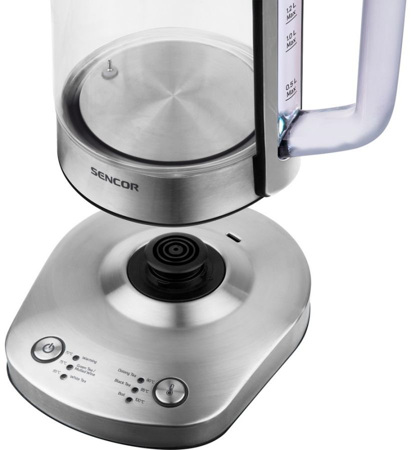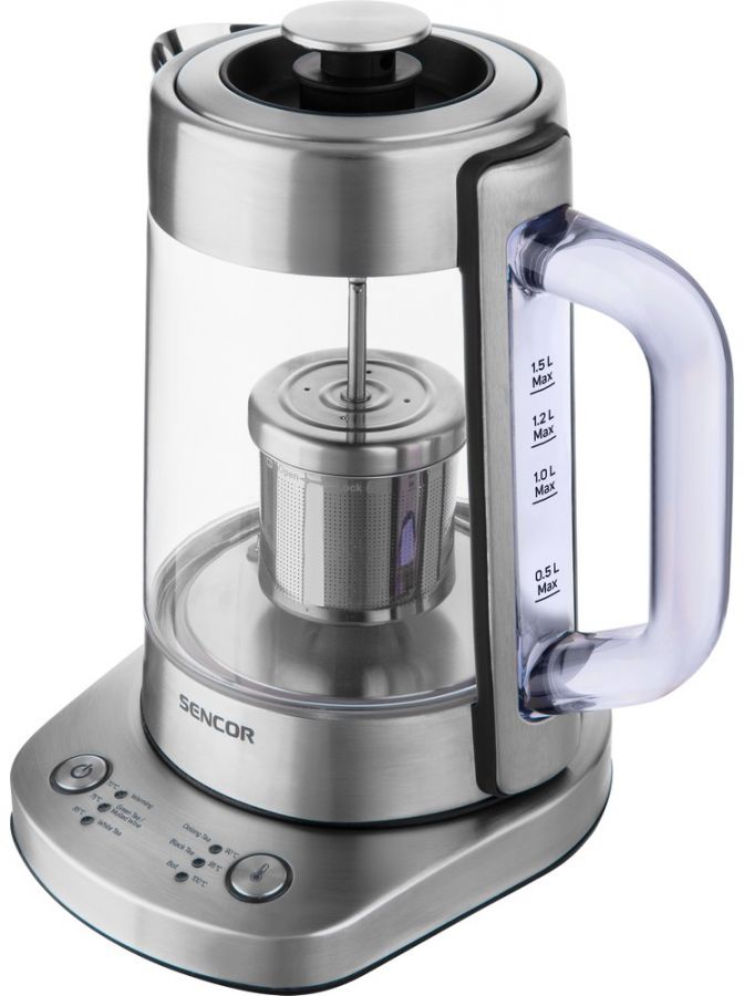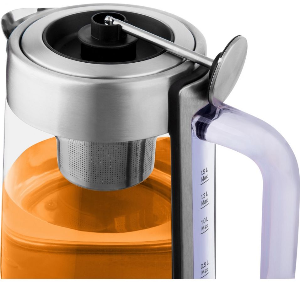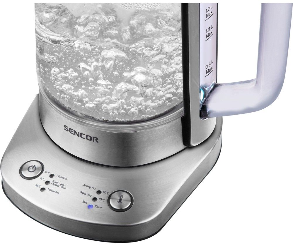 Chytrá skleněná rychlovarná konvice o objemu 1,5 l. Má trojitý bezpečnostní systém, speciálně navrženou výlevku a elektronickou regulaci teploty. Funkci udržování teploty, zvukovou indikaci provozu a zakrytou topnou spirálu.
