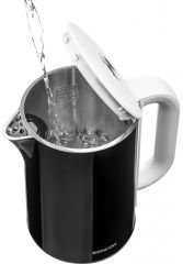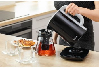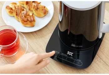 Rychlovarná konvice o objemu 1,5 l, elektronickou regulaci teploty s nastavením teploty a 3 režimy ohřevu. Trojitý bezpečnostní systém.