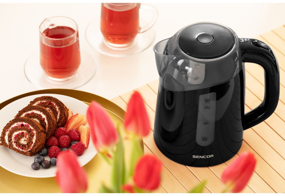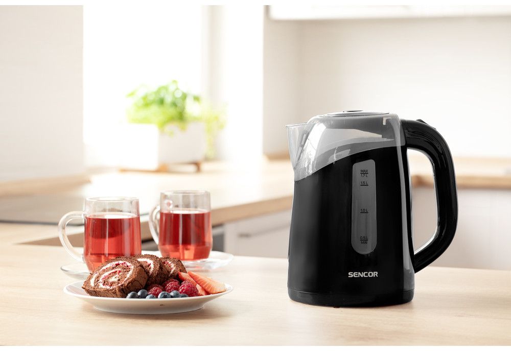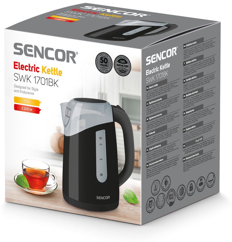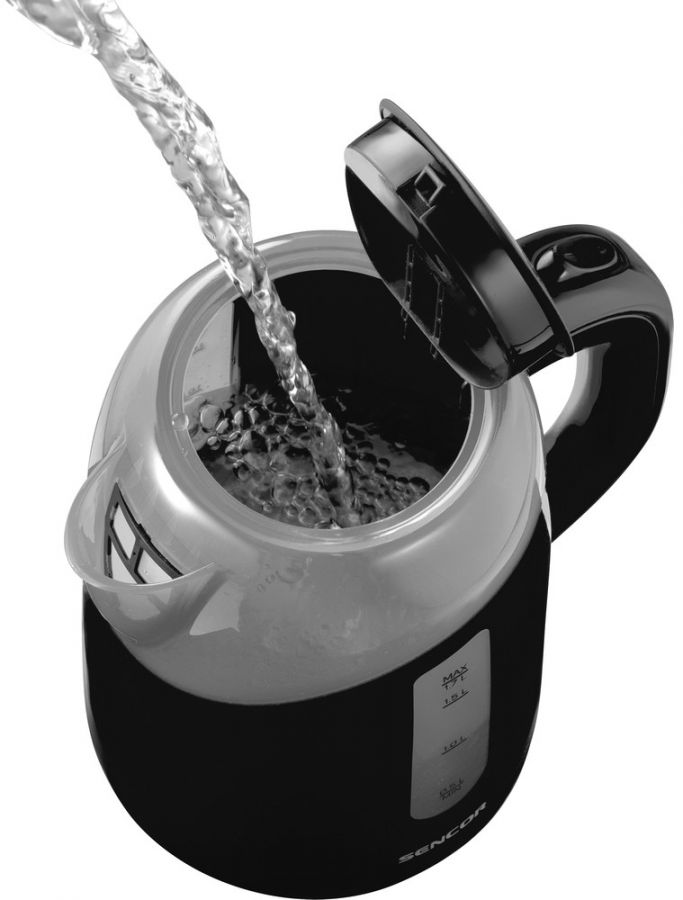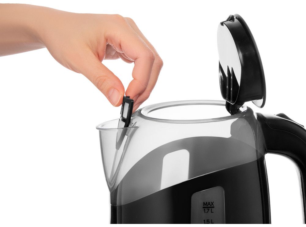 Plastová rychlovarná konvice o objemu 1,7 l. Má trojnásobné bezpečnostní jištění, zakrytou topnou spirálu a indikátor napájení.