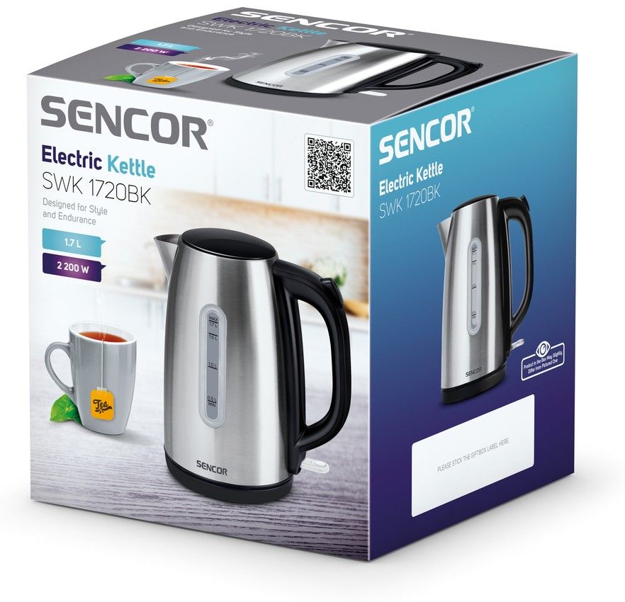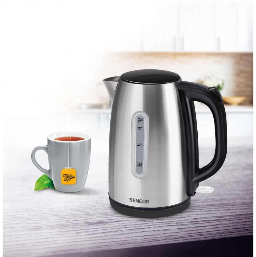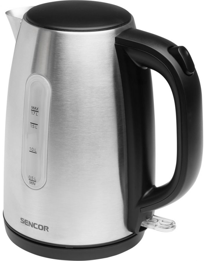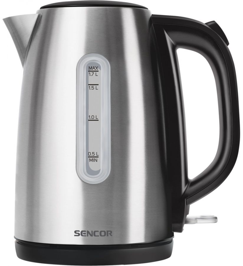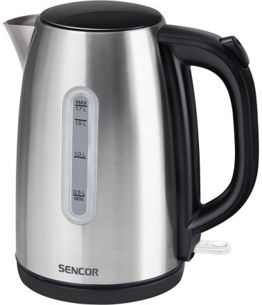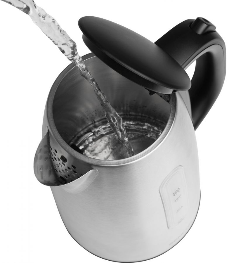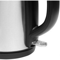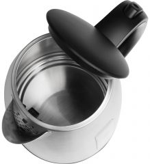 Nerezová rychlovarná konvice o objemu 1,7 l. Má trojnásobné bezpečnostní jištění, světelný indikátor provozu a zakrytou topnou spirálu.