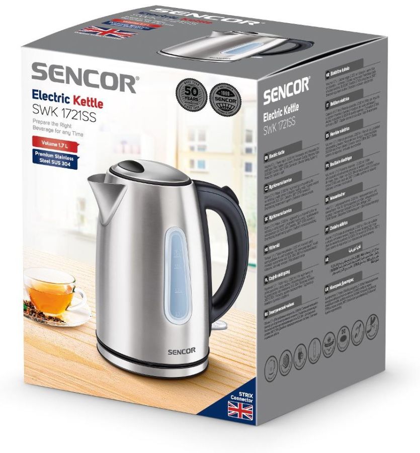 Rychlovarná konvice o objemu 1,7 l vody. Má dvojitý bezpečnostní systém, ukazatel hladiny vody a světelnou indikaci provozu.