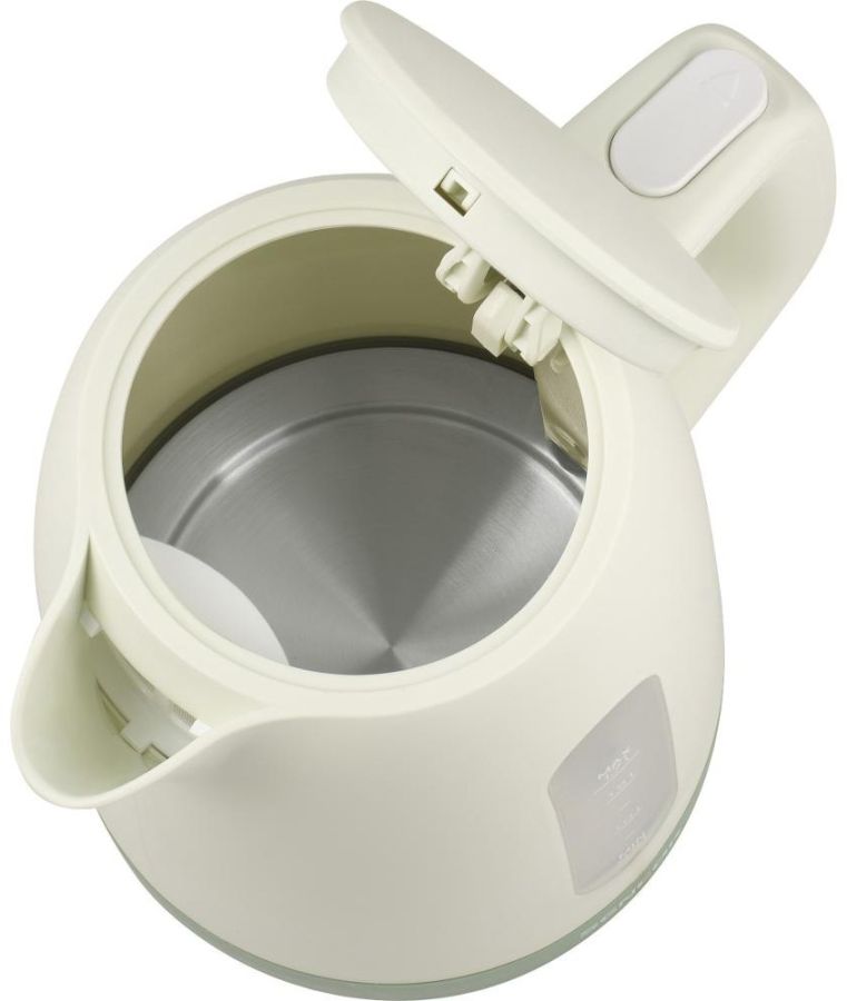 Plastová rychlovarná konvice o objemu 1 l. Má průhledný vodoznak, světelnou signalizaci provozu a skryté topné těleso.