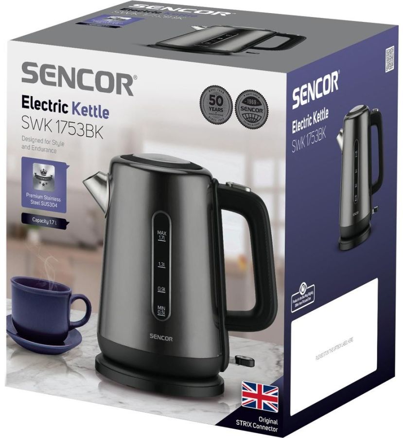 Rychlovarná konvice o objemu 1,7 l vody. Má ukazatel hladiny vody, vyjímatelný a omyvatelný filtr a trojnásobné bezpečnostní jištění.
